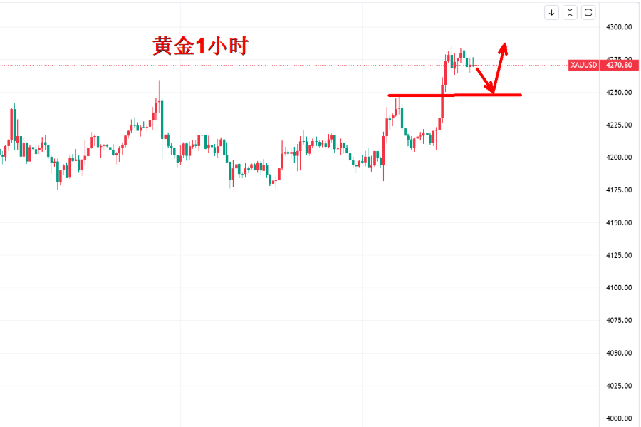 1小时技术面已经突破4220以及4260美元关键性的压力,也意味着短期震荡行情转入多头延续性,能不能突破前高点不用去猜测,上升行情判断只看支撑不看阻力,阻力是判断离场的标准,并非猜测顶部,这个老用户清楚我的判断依据。