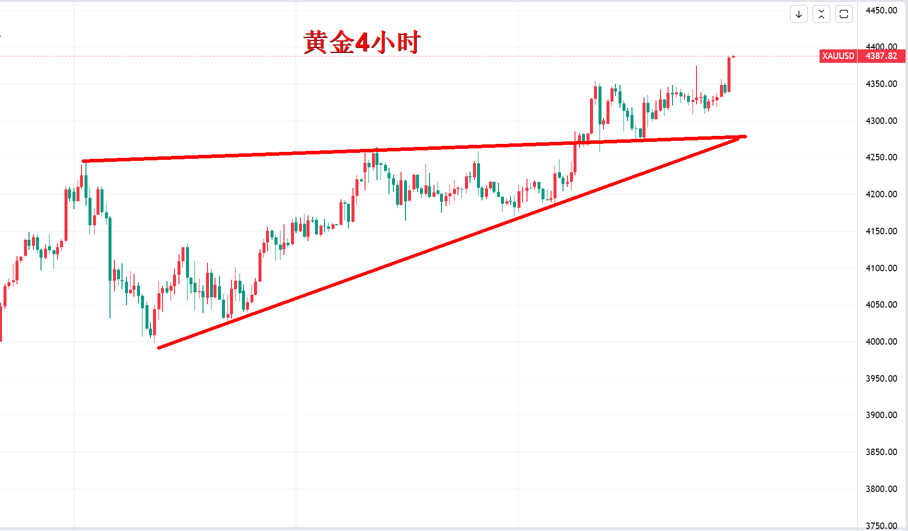 周一,金价早间快速拉升破位历史新高4380美元上方,这就已经为后面的上涨做足了准备,欧盘高位震荡至美盘,昨晚内部直播我就在强调4400美元靠近继续多,口诀:亚盘上涨,欧盘延续,美盘前回调是诱空,见低就多。