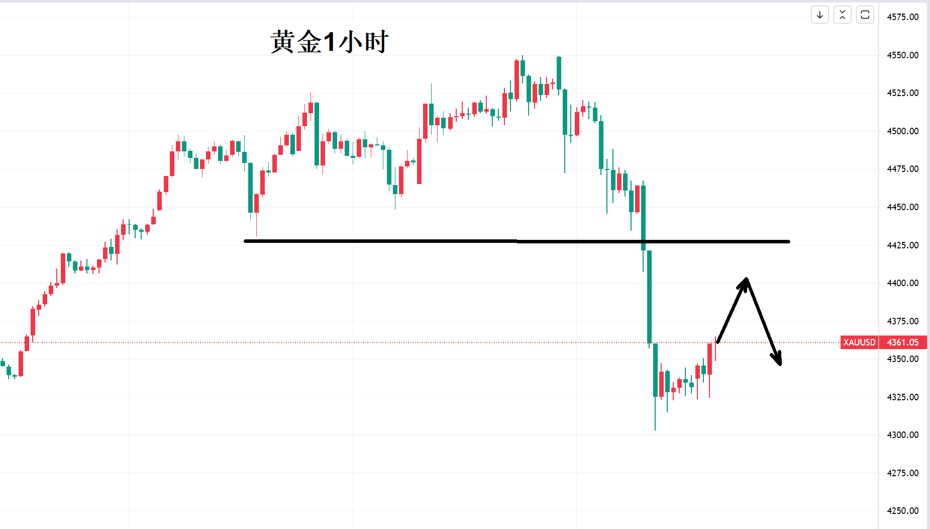 昨晚内部直播中关于口诀强调不要去着急做多,4430美元关键性的支撑已经失效,尤其昨天欧盘反弹后向下破位早上低点位置4430美元,就已经为后面的下跌埋下伏笔。