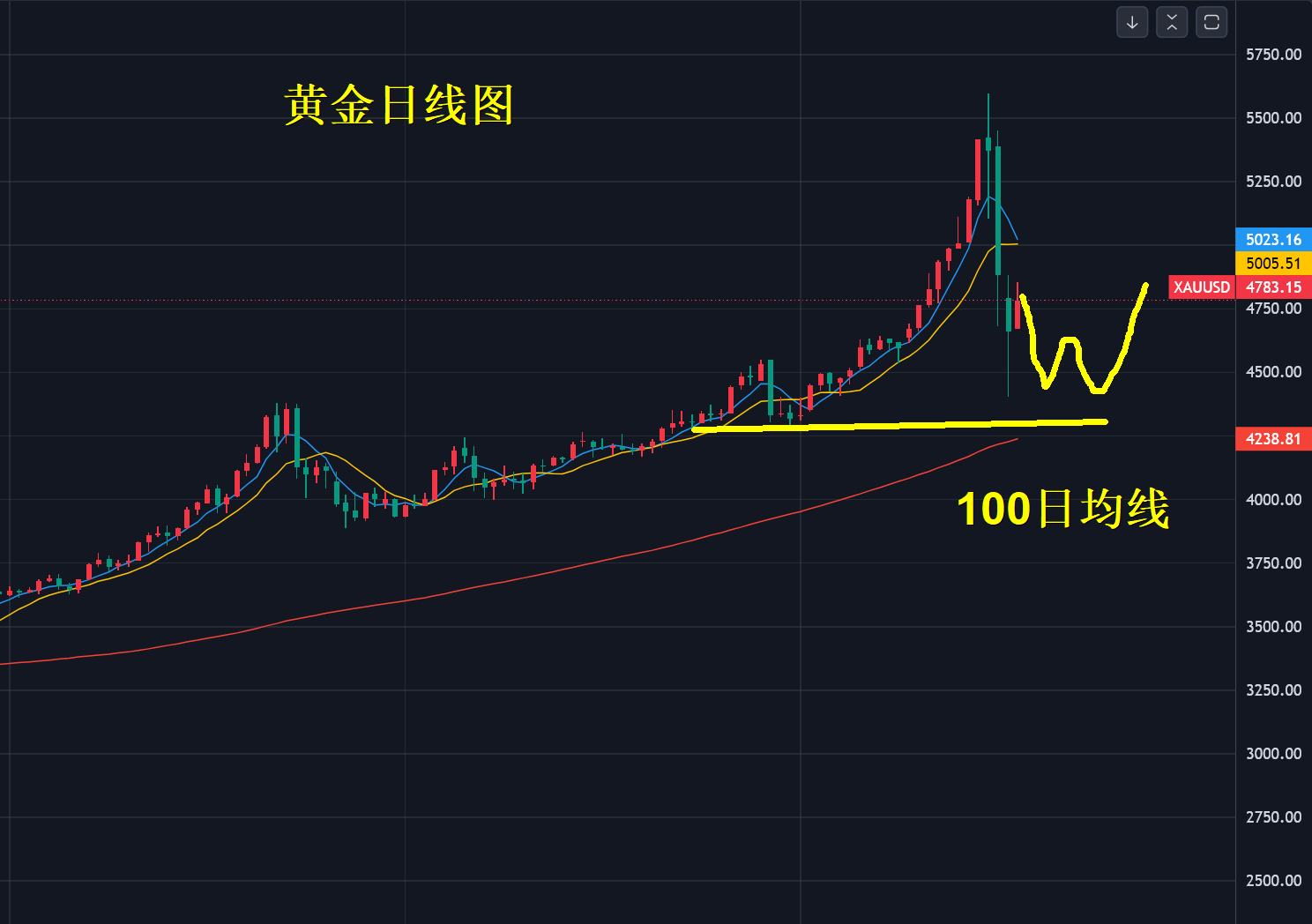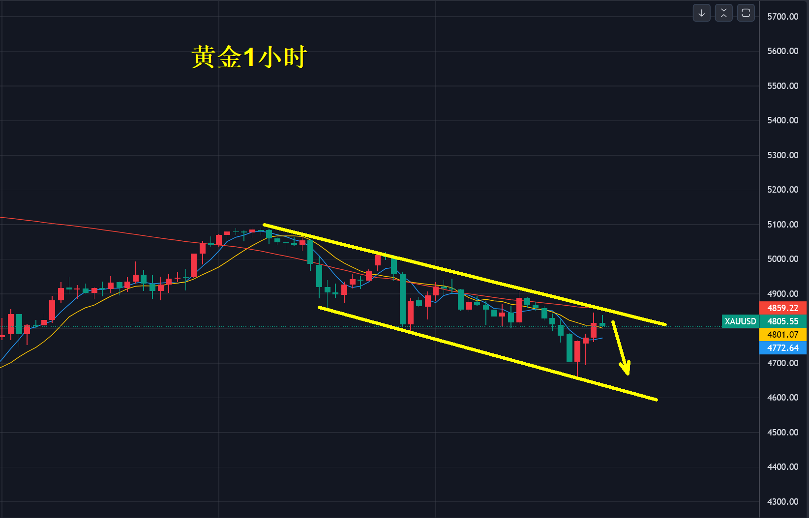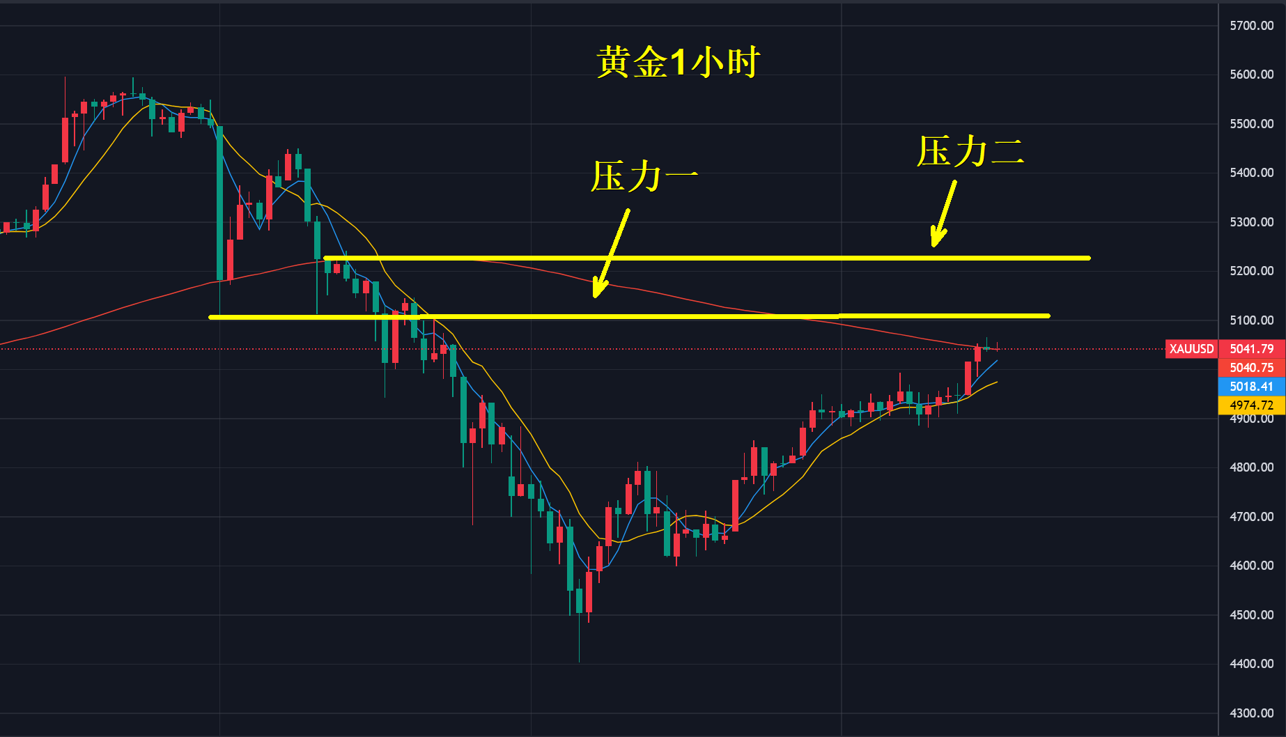 目前金价整体偏弱向下,主要受白银破位下跌影响,下跌行情结果的前置一定是前高点破位并非支撑,今年黄金和白银主旋律以宽幅剧烈震荡向上为主,很难再复刻2025年单边强牛行情,这一点要有心理准备。
