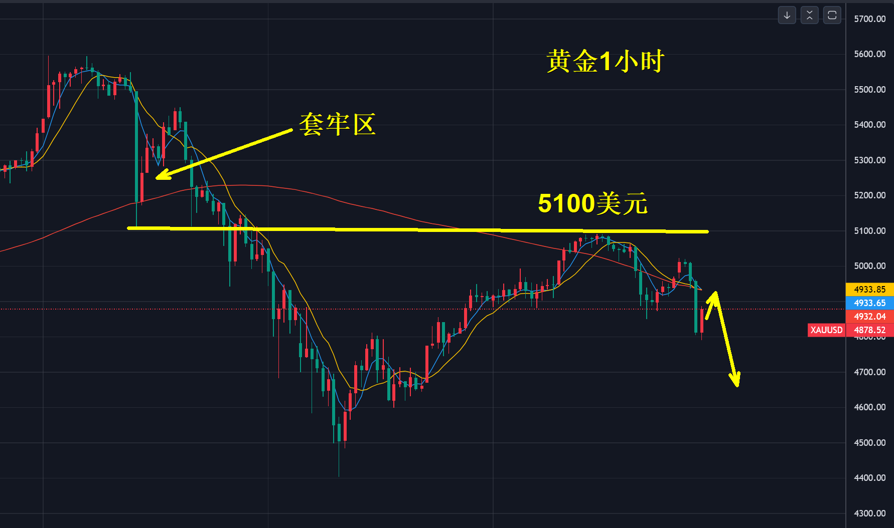 周四金价延续了一轮下跌到4650美元附近,我在《黄金按下“暂停键”,还能做时间朋友吗?》文章结尾明确表示下跌还会进一步延续,5035美元作为多空分界点,在此位置下面反弹空,向下看4750-4680美元,走势与预判完全吻合,尤其亚盘下跌欧盘延续,美盘胶反弹4765-70美元就是诱空。