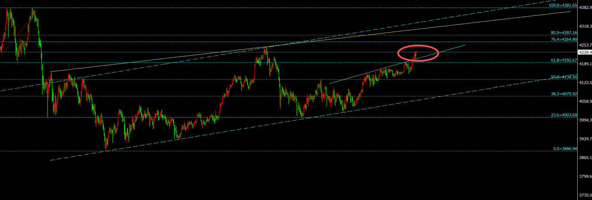 综合得出结论:亚盘4232下空,破位以后4260-80再空,下边4168-66多全天有效,九点以后收盘于10上方回07附近多防守02,上看4222-25-32.