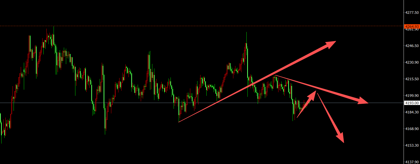 昨天黄金先跌后涨到再跌,整体还是一个震荡市,从运行轨迹来看与早评分析的一样,价格早盘5-15破位走了一波下行,欧盘拉升到4212.6这与我们提到的08-11空也符合,这一波跌到了90这里,晚间在四小时弱多后,价格形成震荡宽幅洗盘上扬,尾盘给出了以60.3白银对应黄金做空,价格对应在18这里,也回落了4201这里,从昨天的运行我们也可以看出趋势性不延续,震荡力度较大,这也就是说机会很大,明天凌晨又是美联储决议,预期日内还是一个宽幅的洗盘,昨天价格下跌是刺破下线反弹到反转,走出了四小时级别的上涨,但是在小时图上轨附近压制,目前运行于四小时中轴附近,可上可下的走势,有一点可以确认就是四小时的反弹并没有结束,价格又全部运行于短期均线上方,所以现在定论就是下跌到震荡的转变再到正式拉升的转变,基本就是这一逻辑,支撑上亚盘两处,30分和小时图的下线,97-87这里,上方压力仍然是20附近,突破以后看高到36-50一线,下边底线还是72-68这里,因此综上所述,亚盘先回落先多。