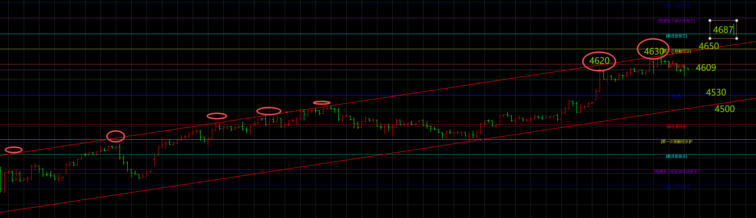 压力:4625-37-62-87,支撑4597-78-70-57-32(给的比较多,如果出现大极端行情可以翻阅查看)