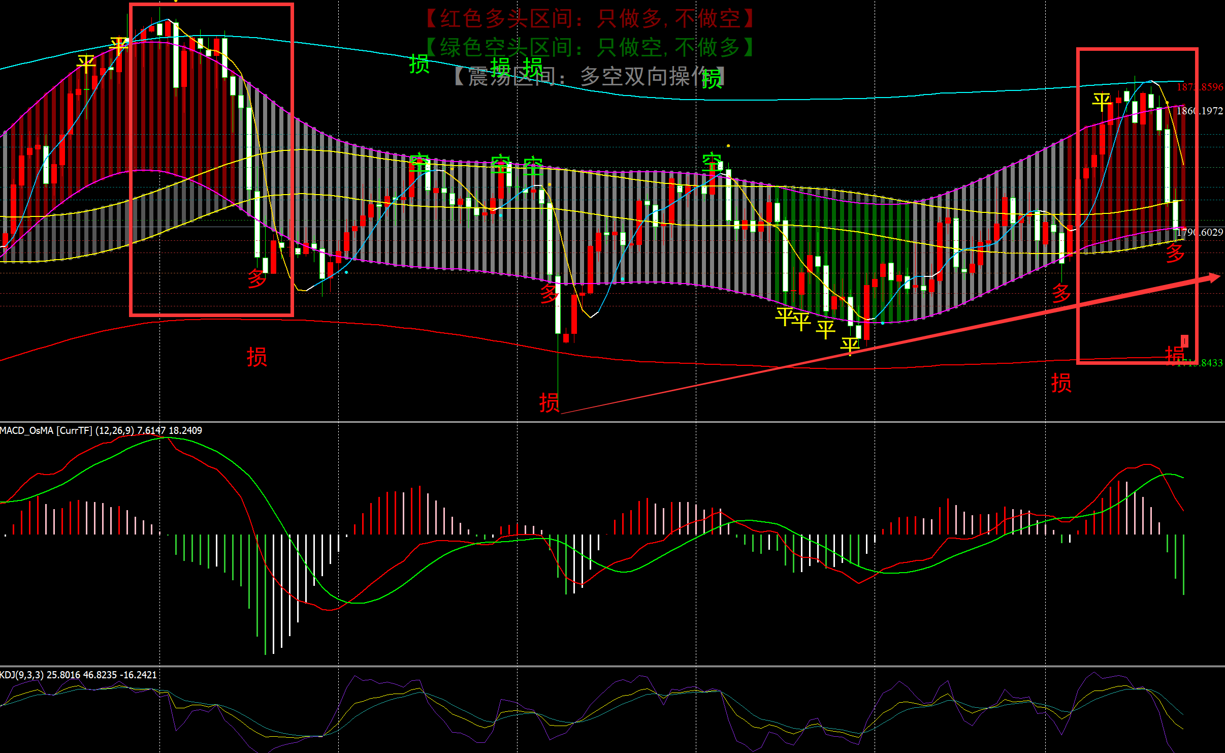 昨天金价再次走出极弱模式,价格以1812开启下行,最低到达1881一线,收盘以一根上下影线的中阴线报收于1889.3,下跌15.5块,而我们早盘把周一03上的挂多出局以后,在1809.3直接进空完美利润兑现于1895一线。 从当前盘面来看,日图再次收阴,从趋势来看空头没有任何改变,可以从两方面来看,一是价格下跌过快,均线没跟