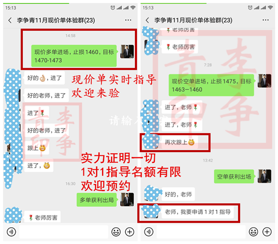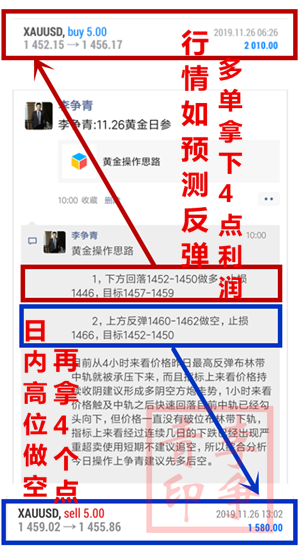 交易之道,循序渐进,步步为营,当错过了一波趋势的开始,就没有必要纠结于是否去参与趋势的结束,怀疑和懦弱都是成功的拦路石,成功来源于尝试,今天行情整体波动不大,争青在1452布局短线多单,在1456止盈出局,拿下2000美金利润。日内高位1459空单再斩4点利润,小行情也有大利润。这次名额空出来,不论你之前亏损多严