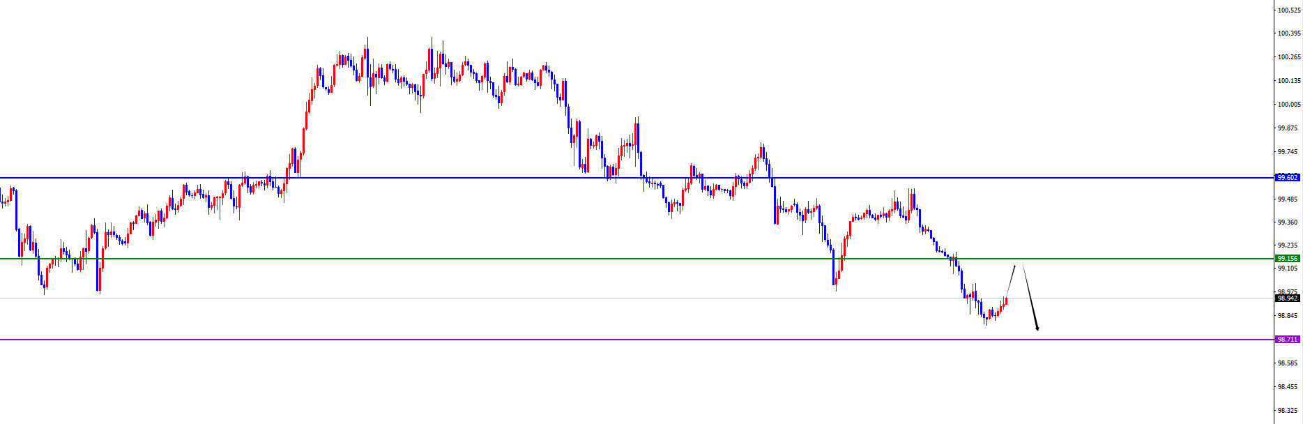 关键分水岭100.20区域,价格没有出现反转信号之前维持空(副趋势)