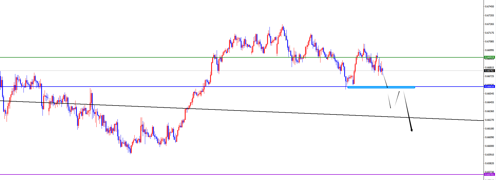 关键分水岭0.6690区域,价格反转信号之前维持空(关注日线支撑得失)