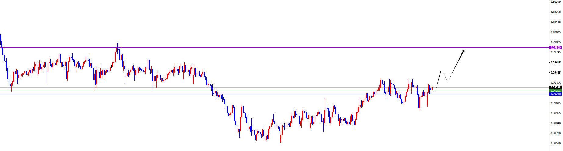 关键分水岭0.7920-30区域,价格没有出现反转信号之前维持多