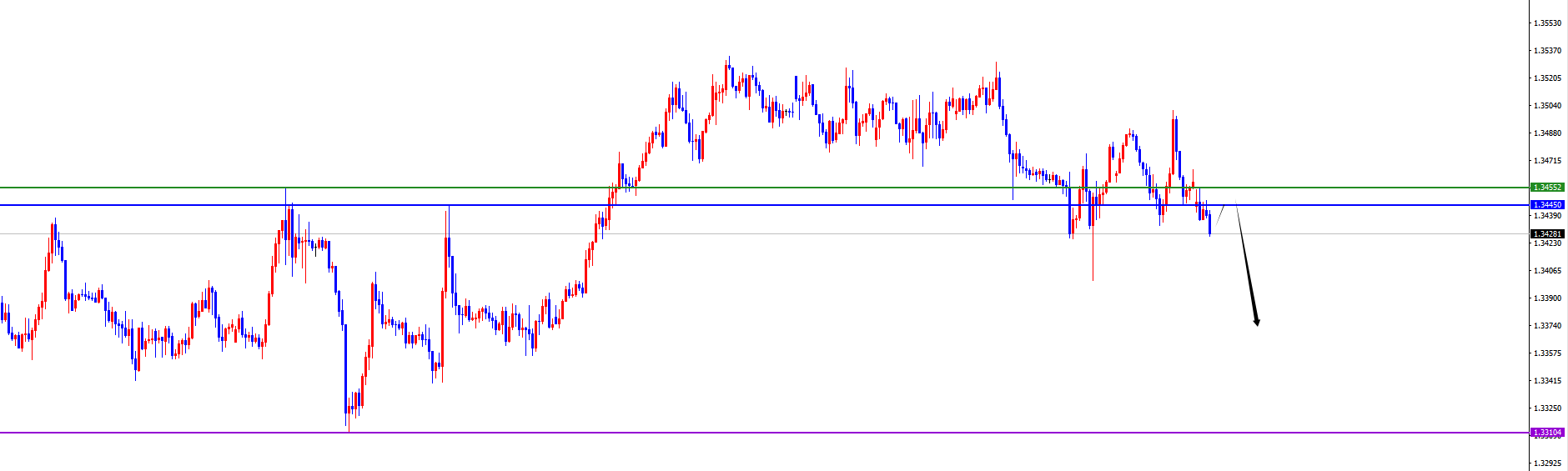 关键分水岭1.3345-55区域,价格没有出现反转信号之前维持空