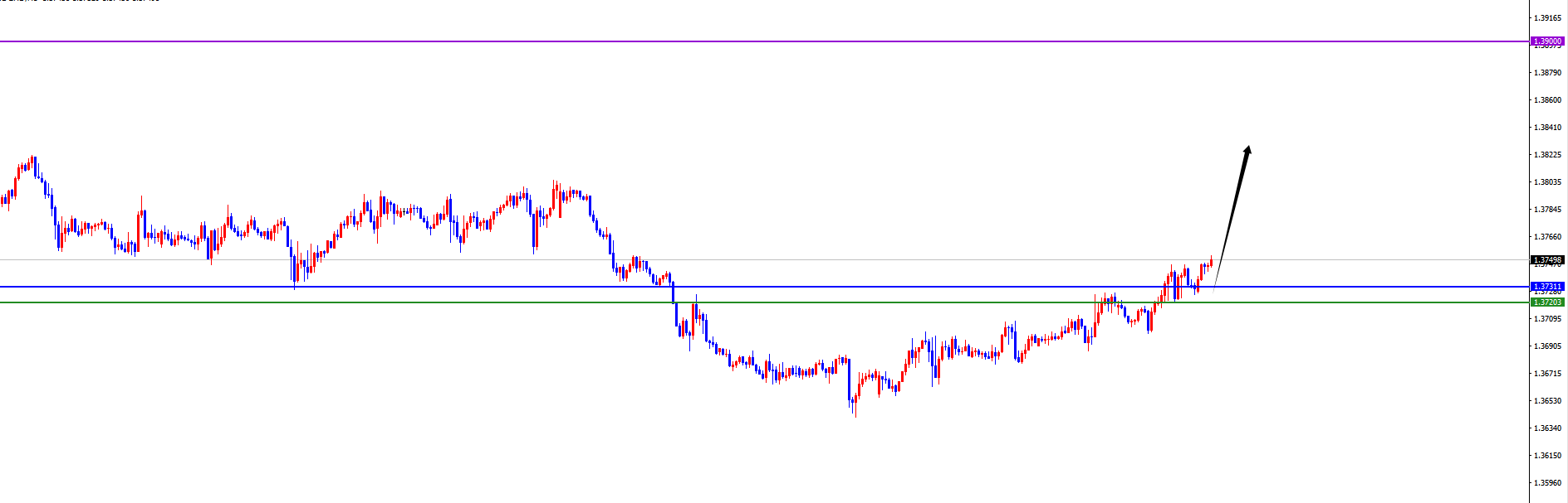 关键分水岭1.3720-30区域,价格没有出现反转信号之前维持多