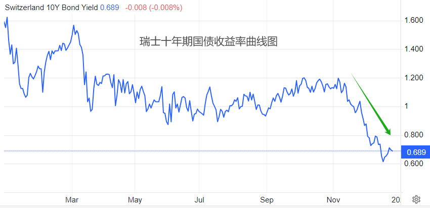 瑞士十年期国债收益率曲线图显示,11月6日以来,收益率进入下行态势,12月15日开始,触底反弹。由于瑞士央行存在降息预期,预计债券收益率在反弹至阻力位后将重新启动跌势。降低的收益率对于瑞郎的升值不利,除非美债收益率降幅更大,不然USDCHF将从债券市场获得上涨逻辑,短期走势反弹的概率也将大增。