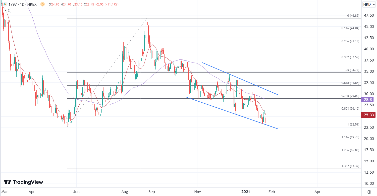 东方甄选(01797)股价今日在两日连涨累计涨逾11%后,今早低开,在早段已经回吐了前两日涨幅,技术上向去年5月份低位逼近,如果通道底部不能缓和压力,甚至下破前低将继续向20港元关口发起测试。