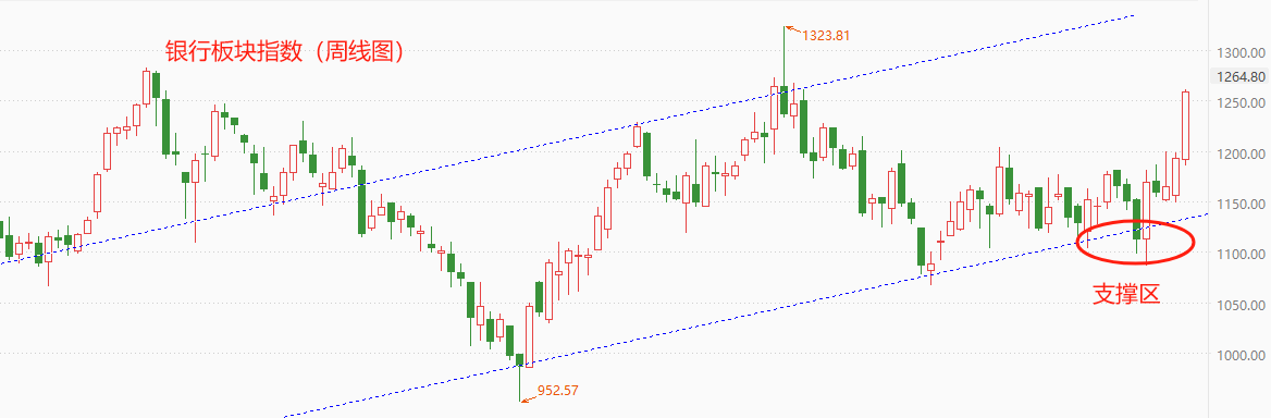 其三,银行板块从技术角度看,存在上涨的需求。