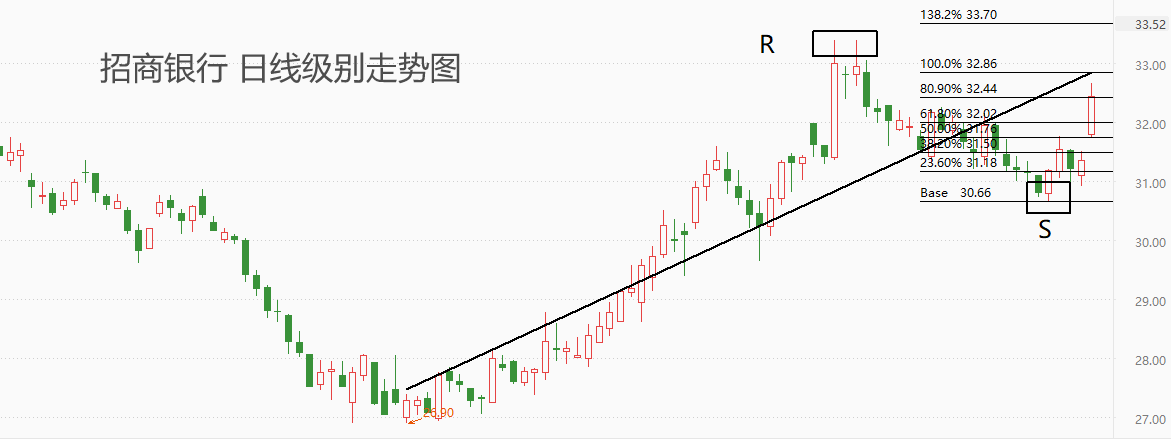 技术角度看,招商银行的股价处于中期上涨趋势之中,下方支撑位30.66元,上方阻力位32.86元,第二阻力位33.70。今日财报发布后,招商银行股价大涨,但仍未与黑色回归线交叉,涨势能否延续仍存不确定性。长周期看,2021年6月份,招商银行触及上市以来的最高价58.92元,至今日32.43元,累计跌幅达到44.96%,空头趋势极为显著。虽然当前招商银行的上涨动能强劲,但长期来看,仍有可能在触及有效阻力后回归空头趋势。
