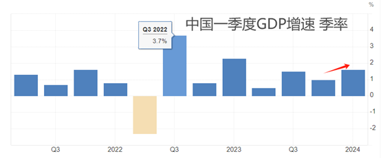 根据统计局数据,今年一季度的GDP增速为1.6%,高于去年四季度的1%,表明一季度经济面有企稳回升迹象。GDP数据公布之前,偏弱的CPI数据和社会消费品零售总额数据,令市场一度猜测中国经济会在一季度出现衰退。按照年率数据计算,今年一季度的GDP增速年度为5.3%,高出前值0.1个百分点,高出预期值0.7个百分点。亮眼的GDP数据大大提振了市场信心,衰退预期随之减退,黄金白银等避险品种的价格自然会有所下跌。