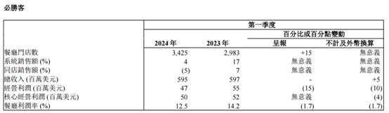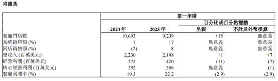 分品牌看,旗下的肯德基品牌实现总收入22.3亿美元,同比增长1%;餐厅门店数从9239间增加到10603间,涨幅15%;经营利润3.72亿元,占到经营利润总额3.74亿元的绝大部分;餐厅利润率19.3%,虽然相比2023年有所回落,但绝对值仍处于较高水平。整体看来,肯德基品牌的业绩数据表现良好,并没有对整体业绩形成拖累。