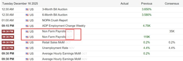 本周二21:30,美国劳工部劳动统计局,将公布美国10~11月非农就业报告。由于美国政府停摆从10月1日持续至11月12日,所以本次公布的非农就业报告的基础数据存在无法采集、无法追溯的问题。美国劳工部的处理方法是,合并10月和11月的数据,不再逐月单独公布。这也意味着,本次非农公布的数据并未完全覆盖两月的数据,而是“有多少基础数据就公布多少数据”。美国10~11月非农就业人口变动的前值为11.9万人,预期值为3.5万人,市场预期非常悲观。美国自动数据处理公司公布的11月小非农ADP数据是-3.2万人,就业市场已经开始萎缩,该数据显著拉低了市场预期。如果本次非农数据符合市场预期,美国就业市场衰退迹象就得到确认,美联储2026年潜在降息幅度和次数将升高,美元指数将持续承压。