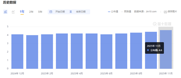 首先,美国劳动力市场释放出明显分化信号。尽管11月新增就业人数仍高于预期,但失业率意外攀升至4.6%,创下近四年新高。这一变化被市场解读为就业结构开始松动的早期信号,削弱了对美国经济“软着陆”的信心。随着失业率上行,美联储继续维持高利率的合理性受到质疑,市场对未来进一步降息的预期随之升温。在低利率或降息环境中,持有黄金的机会成本下降,资金重新回流至贵金属市场,成为推动金价上行的核心宏观逻辑。