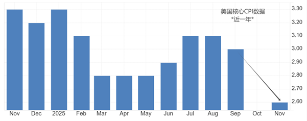 今日21:30,美国劳工统计局将公布12月CPI数据,该数据是美联储研判美国通胀走向的核心依据。10月份和11月份的CPI数据均受到美国政府停摆的影响,12月份是首个不受政府停摆影响的月份,更能揭示美国真实的物价表现。
