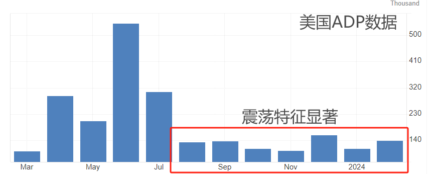 ATFX汇市:小非农AD数据来袭,将为周五大非农提供前瞻指引 ATFX汇市:今日20:15,美国自动数据处理公司将公布美国3月AD就业人数,前值为增加14万人,预期值增加14.8万人。上图为美国AD数据的历史表现,最近七个月,新增就业人口的柱线呈现出显著震荡特征,最大值为15.8万人,最小值10.4万人,平均值12.8万人。如果今日A