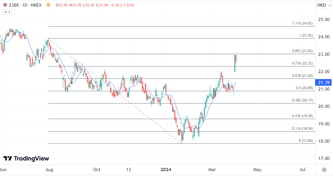 ATFX港股:业绩加分红催化,银行股4月集体开门红 ATFX港股:周二港股假期强势回归的同时,金融股表现亮眼,金融分类指数尾盘收高2.3%,其中中银香港(02388)绩后造好,收盘抽高9.5%,为表现最佳成分股。建行(00939)和工行(01398)也录得逾2%的涨幅。 建设银行(00939)2023年纯利按年增2.3%至3275.4亿元人民币,每股盈利1.31