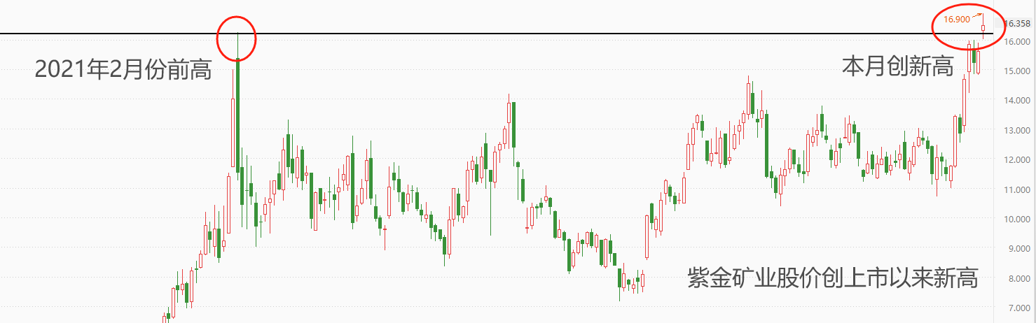 ATFX:受强势金价提振,紫金矿业股价创上市以来新高 ATFX港股:以COX黄金为基准,3月份累计涨幅9.74%,4月涨势延续,三个交易日累计涨幅2.91%,最高触及2308.8美元/盎司,屡创纪录新高。人民币计价的黄金也创出541.48的历史新高。受此影响,港股市场黄金板块的个股纷纷异动,尤其是从事金属矿产资源勘查、开发的紫金矿业