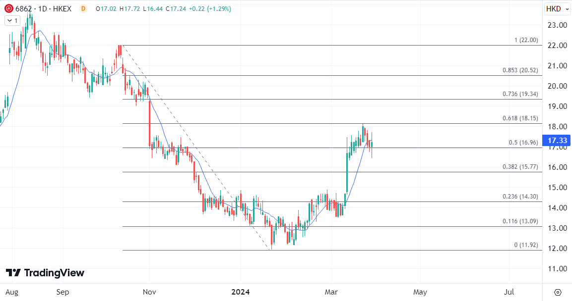 ATFX:O行业龙头泉峰控股发布2023年财报,股价大涨超两成 ATFX港股:昨日,主要从事电动工具和户外动力设备(O)的泉峰控股发布2023年财务报告,其中重点提到:2023年收入13.74亿美元,毛利润3.87亿美元,毛利率约28.17%,处于较高水平;派发2023年特别股息,宣派股息每股0.2764HKD,股息派发日2024年7月16日。按照当前20.