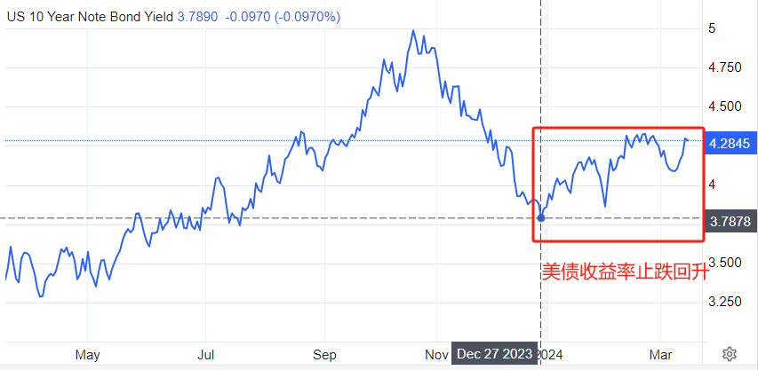 ATFX汇市:美国2月I年率大增,经济强劲增长之际降息预期趋弱 ATFX汇市:据美国劳工部劳动统计局昨日发布的数据,美国2月I年率最新值为1.6%,高于前值1%,高于预期值1.1%,最新值相比前值大幅增长,意味着美国的工业品出场价格较高,未来出现通货膨胀的可能性增加。昨日,美国十年期国债收益率从4.19%上升至4.298%,涨幅