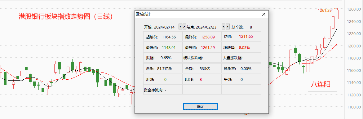 ATFX港股:港股市场银行板块指数已实现八连阳,未来涨势大概率延续 ATFX港股:港股市场的银行板块总市值高达9.43万亿港元,以市值排名前五位的个股分别为工商银行(1.48万亿港元)、建设银行(1.25万亿港元)、农业银行(1.17万亿港元)、汇丰控股(1.13万亿港元)、中国银行(0.9332亿港元),累计市值5.9632万亿港元,