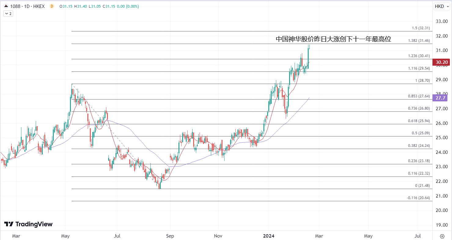 ATFX港股:资源股逆市跑出,关注周期股的春季行情 ATFX港股:周一港股震荡回吐,未能跟随内地股市在龙年春节后回归而收高反而跌超1%,不过部分板块仍逆市走高,其中较为强劲的来自于资源股的表现。 受民营矿停产休假影响,刺激动力煤价前一日收造每吨921元人民币,按周反弹1.1%,煤炭股兖煤(01171)大涨7.7%;中国神华(