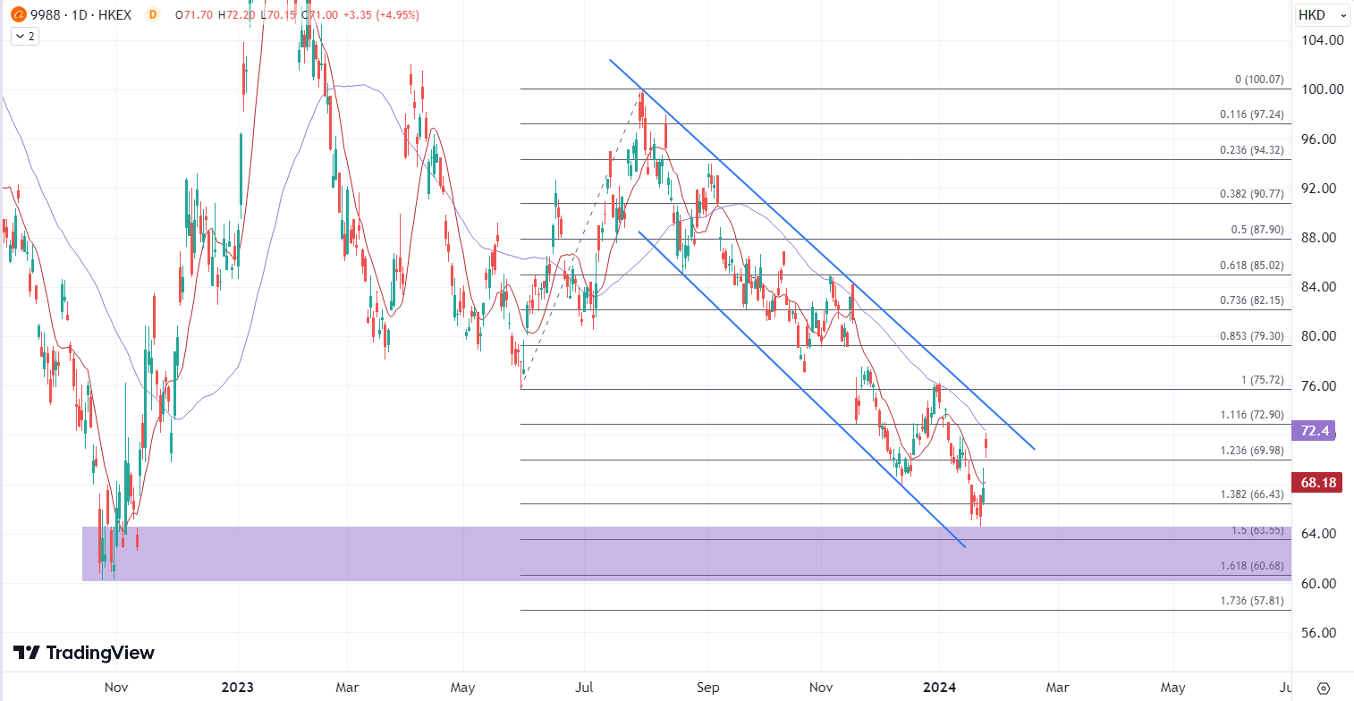 ATFX港股:获马云大幅增持,阿里巴巴突发利好 ATFX港股:今日港股继续在科技股的带动下尝试反弹,其中阿里巴巴为盘中主要的带动主力。消息面上,马云据报上季增持阿里港股和美股,消息在隔夜已经造好阿里美股,盘前一度升逾7%,今日继续在港股早盘撑市。 《纽约时报》引述消息指,马云上个季度一直逆市增持阿里巴巴港