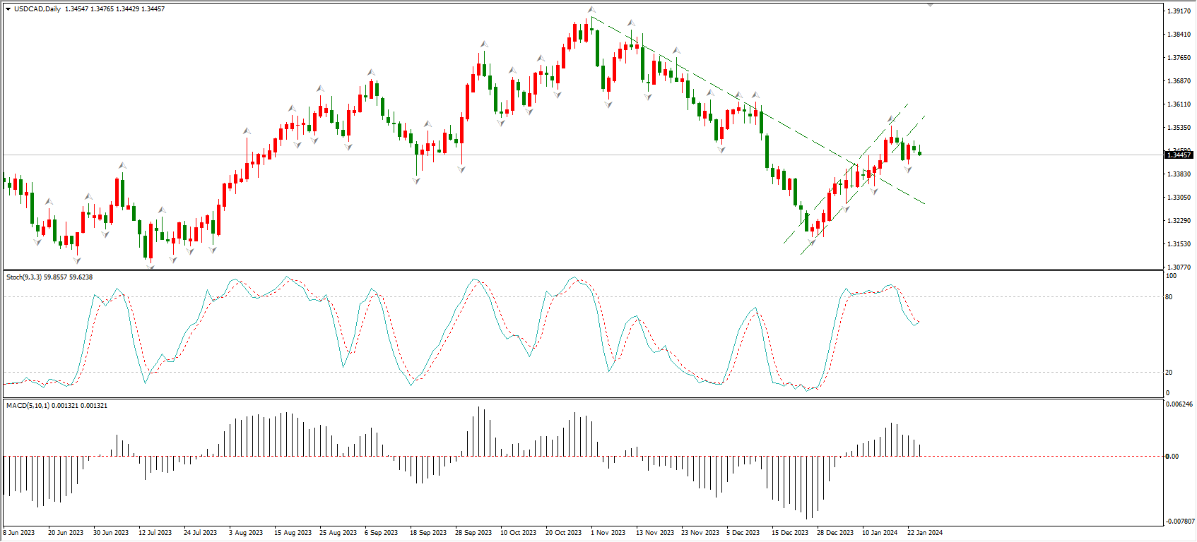ATFX汇市:加拿大央行利率决议来袭,按兵不动概率较高 ATFX汇市:加拿大的宏观经济表现疲弱,基准利率却太高。2023年三季度,加拿大GD增速年率仅为0.47%,连续两个季度下降,已经跌至1%一下,基本维持原地踏步的状态。当前的基准利率为5%,远高于GD增速,对宏观经济复苏有抑制作用。今日22:45,加拿大央行将公布1月份利