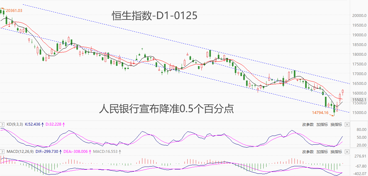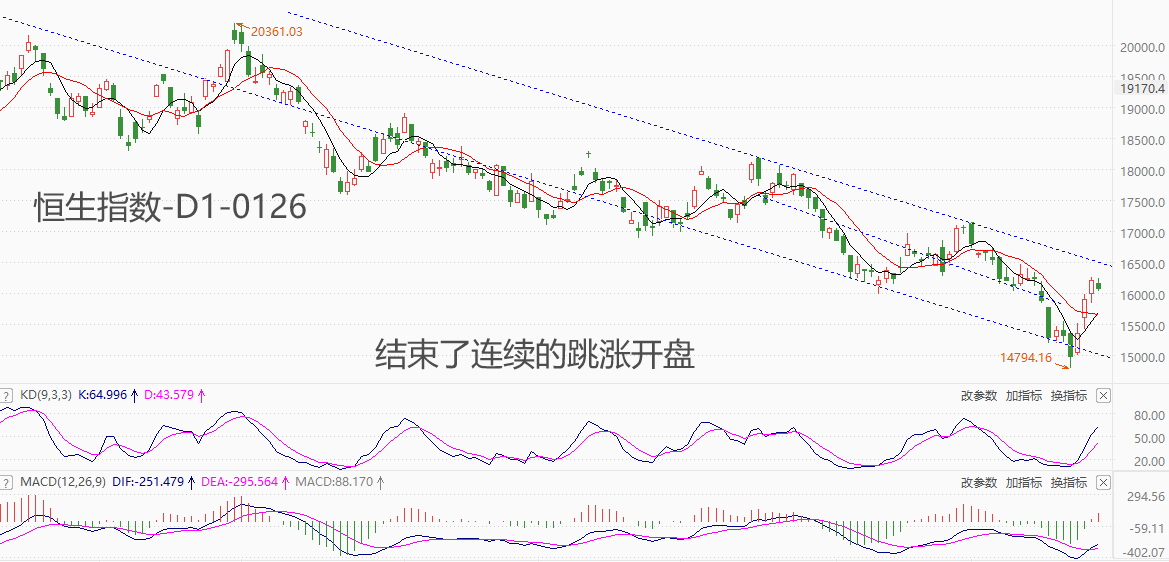 港股:恒指连续跳涨的规律被打破,反弹力度有所减弱 本周二开始,恒生指数连续跳涨开盘并在盘中创周内新高。但是,今日开盘跳空,打破了持续跳涨的规律,超跌反弹力度减弱,意味着市场看多情绪有降温迹象。如果今日盘中无法创出周内新高,则恒指下周涨势堪忧。 消息面来看,官方表态称:支持各地城市政府和住建部门,因