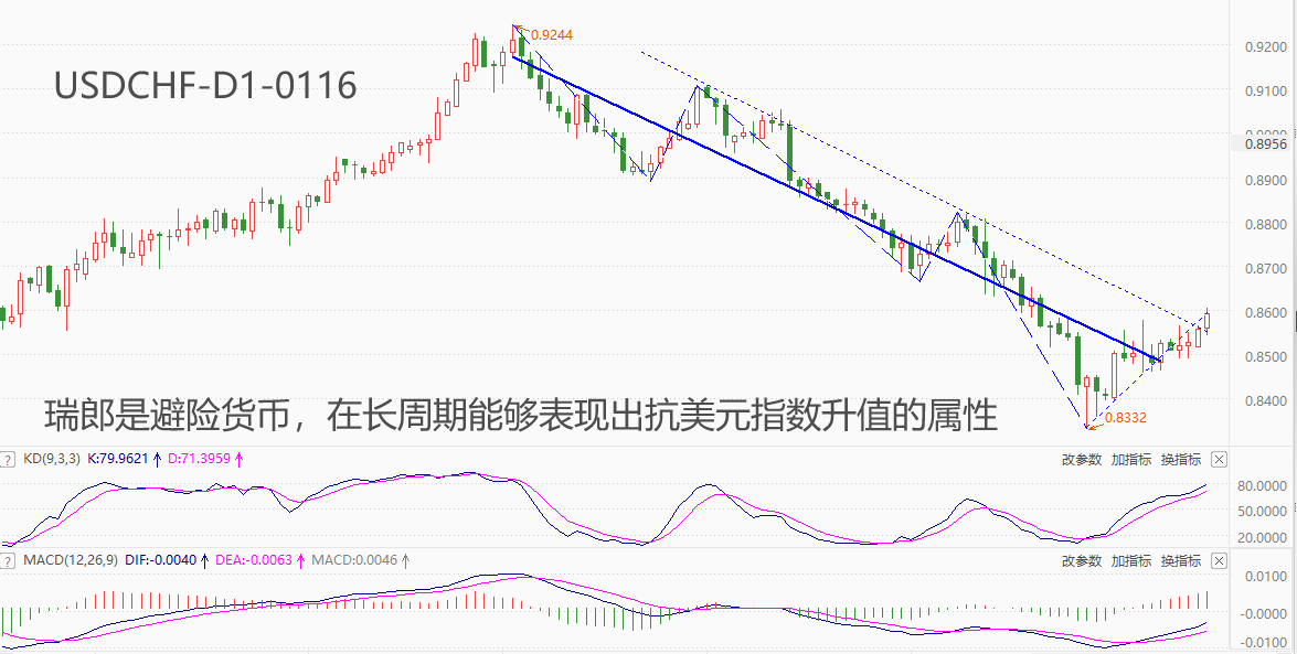 ATFX汇市:美元指数延续反弹态势,UDCHF年内已涨超2% ATFX汇市:上周五和本周一,美元指数均以阳线收盘。今日盘中,美元指数呈中阳线形态,如果晚间的美国1月纽约联储制造业指数没有爆冷,美元指数今日以阳线收盘的概率极高。连续三日以阳线收盘,意味着美元指数的反弹态势尚未结束,降息预期并没有显著动摇美指多头持有