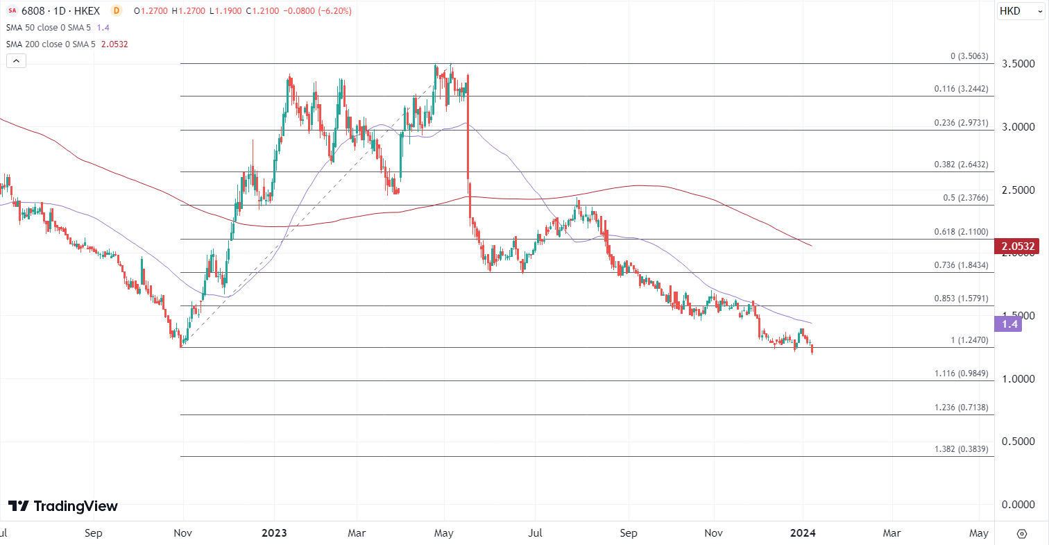 ATFX港股:消费股延续上周弱势,春节倍增行情仍可期? ATFX港股:周一港股延续了上周开具的欠佳走势,各大板块中消费股普遍疲惫。 高鑫零售(06808.HK)、维他奶(00345.HK)及九毛九(09922.HK)跌逾5%。李宁(02331.HK)跌4.5%;安踏体育(2020.HK跌近0.8%)。蒙牛(02319.HK)、中国飞鹤(06186.HK)、青啤(00168.HK)、统一企业中