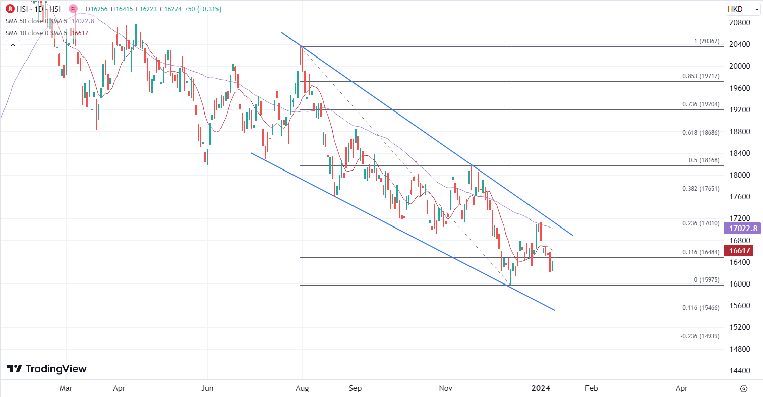 ATFX港股:恒指五连跌后辗转反弹,北水抛售下可能再度破底 ATFX港股:港股五连跌后,今早小幅高开曾升逾百点,一度高见16,414点,半日升51点或0.3%,报16,275点;国指升2点或0.04%,报5,483点;恒生科技指数跌8点或0.2%,报3,476点。 隔夜美股科技股大涨,今日恒指科指今早曾反弹1.6%,不过随后走低。腾讯(00700)近日
