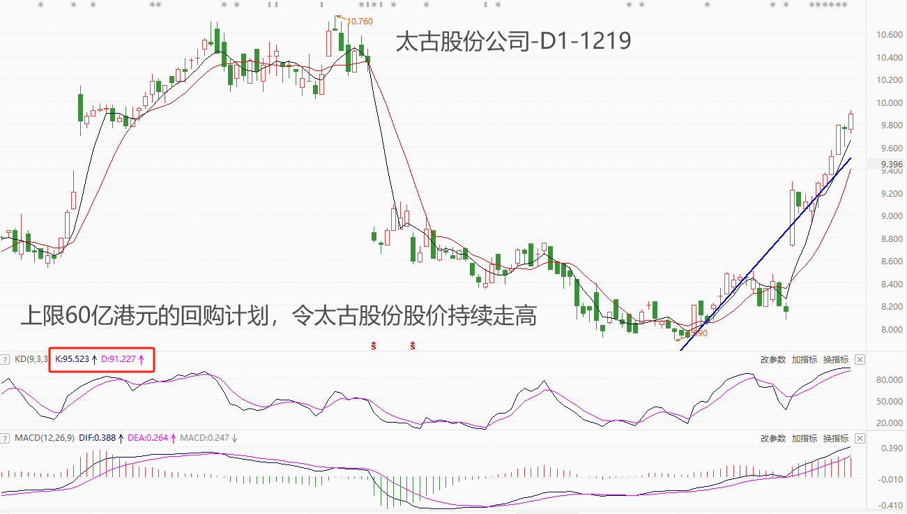 ATFX港股:太古股份公司频频回购股份,市价已逼近10港元关口 ATFX港股:12月5日,隶属港股市场“综合企业”板块的太古股份公司发布公告称:将使用不高于60亿港元的金额回购普通A股和B股的股份,资金将以本公司可用资本和现金储备拨付。公告中还提到:股份回购的日交易量不应超过所有股份于前二十个交易日的平均每日成交