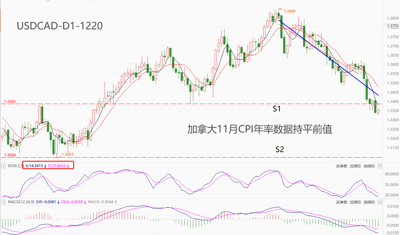 ATFX汇市:加拿大11月CI年率持平前值,UDCAD创近四个月来新低 ATFX汇市:11月19日,加拿大统计局发布通胀率数据,其中提到:11月CI年率3.1%,与前值持平,略高于预期值2.9%;11月CI月率0.1%,同样与前值持平,高于预期值-0.1%。受此消息影响,UDCAD昨日下跌0.49%,今日延续跌势,盘中最低触及1.3320,创出8月4日以来新低