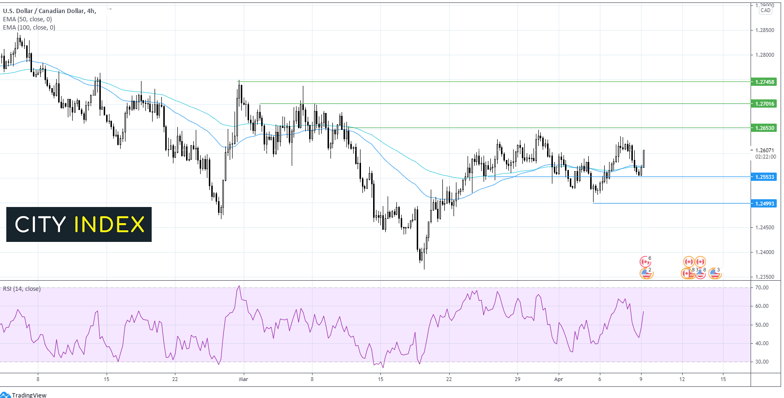 3月末以来美元/加元一直相对区间波动,这个水平通道的上档在1.2650而下档在1.2550。
