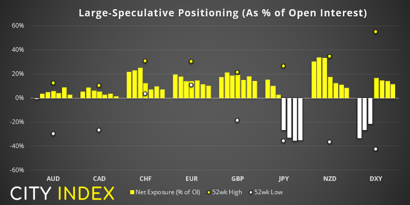 日元期货连续第四周保持净空头,但略微减少1500张。