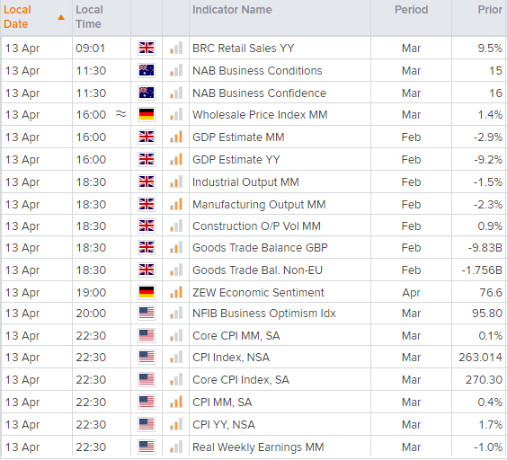 到了美国时段,市场的焦点将全部转向CPI报告。我们知道美联储目前并不担心上升的通胀,但若读数疲弱支持美联储的温和立场,有望助涨股市。(来源:嘉盛集团)