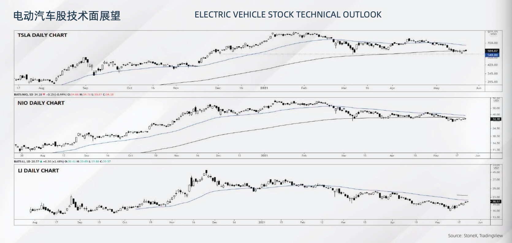 我们用EV/EBITDA(企业价值倍数)这指标来观测就不难发现,投资者显然对电动汽车制造商充满热情。嘉盛集团全球研究主管Matt Weller在今年6月初的北京媒体会上就分享了对相关股价的看法——特斯拉汽车(TSLA)的EV/Revenue为15.3 ,第一季度销量为184,800辆;蔚来汽车(NIO) 的EV/Revenue为14.8 ,第一季度销量为20,060辆;理想汽车(LI) 的EV / Revenue 为9.4,第一季度销量:12,579辆。当前股票估值的定价是基于该市场未来多年指数级增长和市场份额提升。