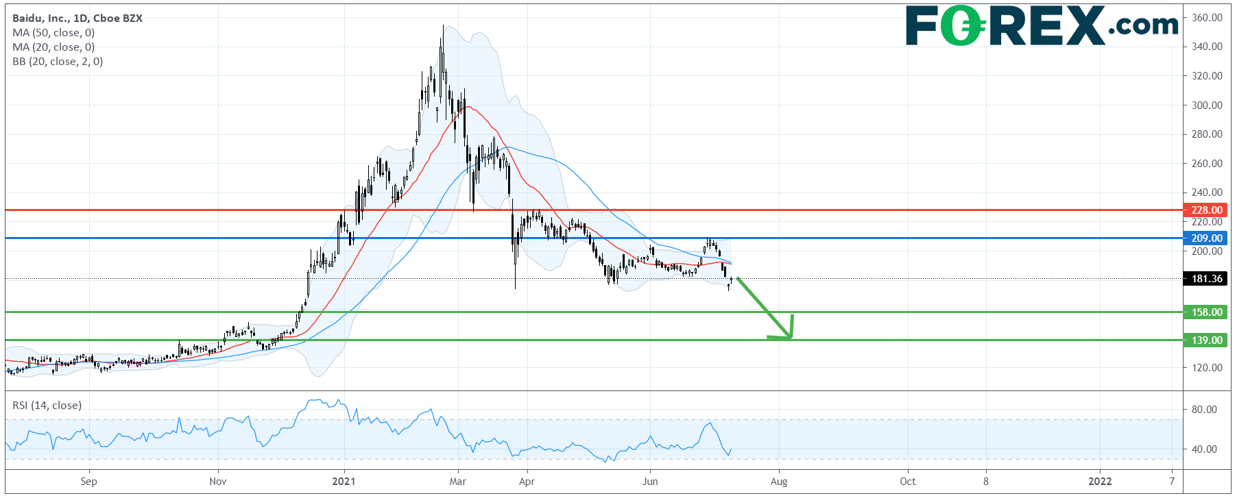 百度 (BIDU.US):走势转弱,下方首个目标158美元