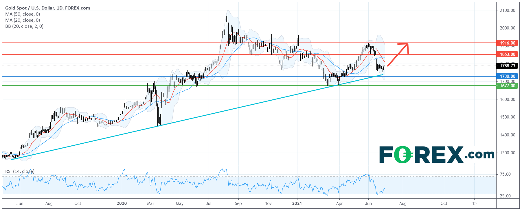 看涨的投资者可将1,730美元视为主要支持(止损)位,上行目标在1,853美元及1,916美元。