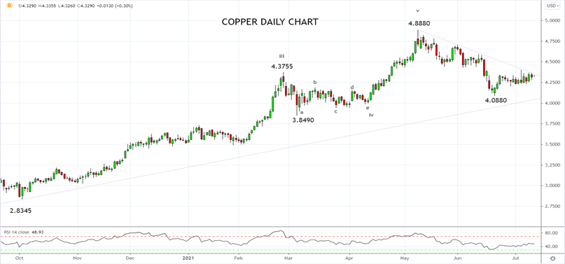 铜的价格倚靠着上涨趋势支撑4.00附近,所以技术面我们继续看涨,但要增强信心,相信低点已在4.08构筑且已重拾上涨趋势,前提是突破并收上关键阻力位4.45一线。