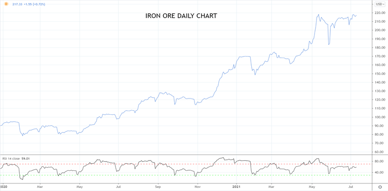 供应继续受限帮助铁矿石价格顽强守住高位。消费量占全球两大出口国澳大利亚和巴西铁矿石产量97%的中国,其需求加上中国以外其它国家的需求一直很强劲并且提振短期价格。