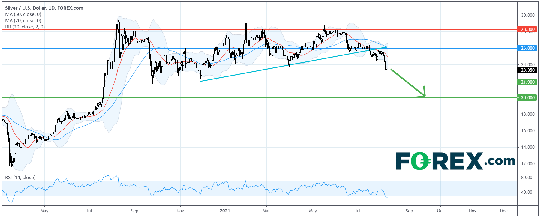 现货白银 (XAG/USD):反转向下,或跌至20美元