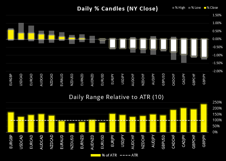 美元兑日元和瑞郎以外的货币同样获得避险资金流的青睐。美元指数到达我们的目标,即3月高点,但当天收出看跌pinbar,预警短期趋势势竭。美元上涨与加拿大现任总理Justin Trudeau在大选中落败(或至少将很多权力拱手于对手党派)的可能性与日俱增,推动美元/加元反弹至1个月高点。加拿大大选目前正在进行中。
