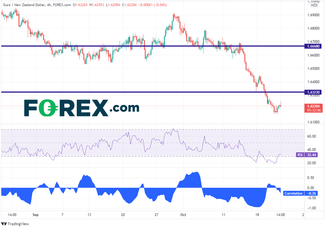两者在4小时图上的相关性高达+0.95,几乎可以说是完美的正相关关系。所以,如果纽元/美元在这个较短的时间周期内很快回撤,标普500指数很可能也随之回撤。